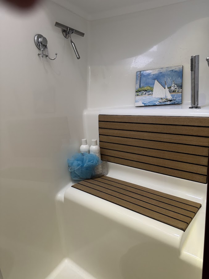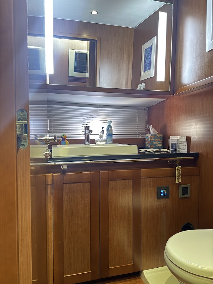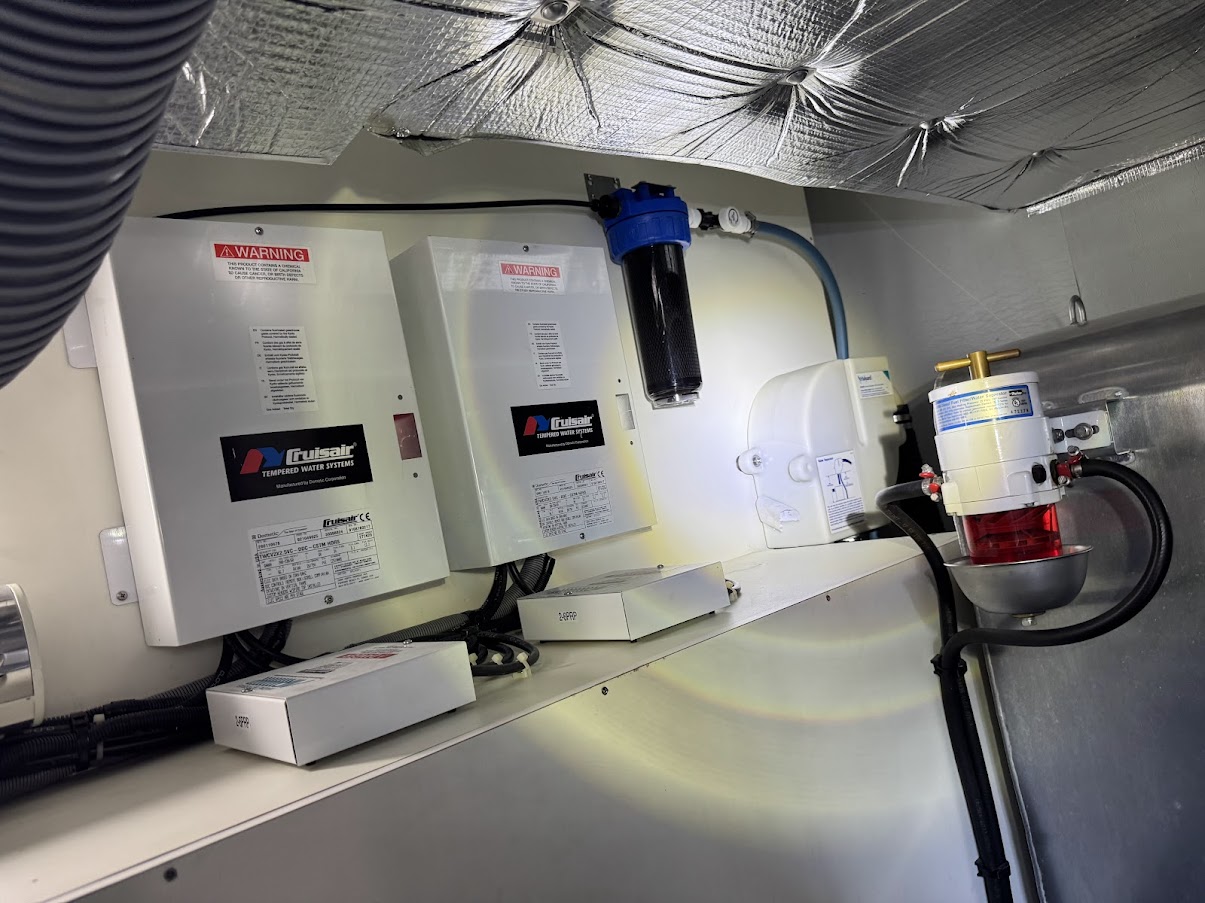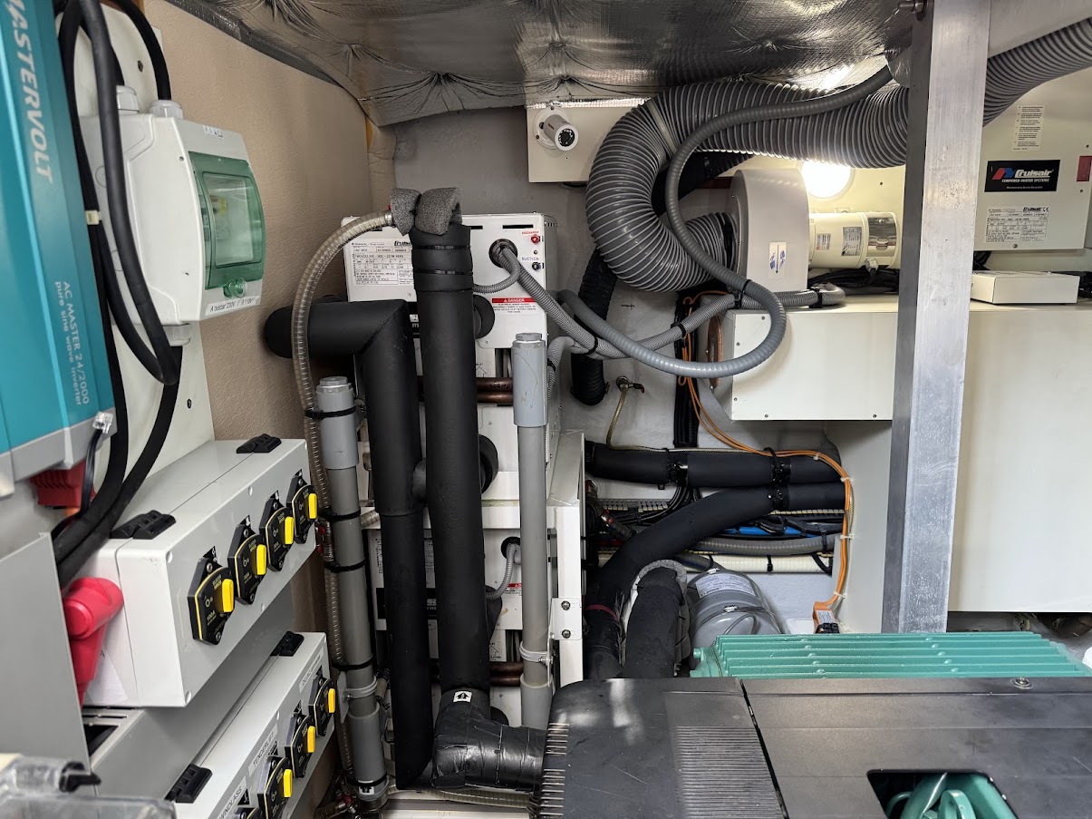 – Moved AC condensation hoses to drain into the grey water tank instead of overboard