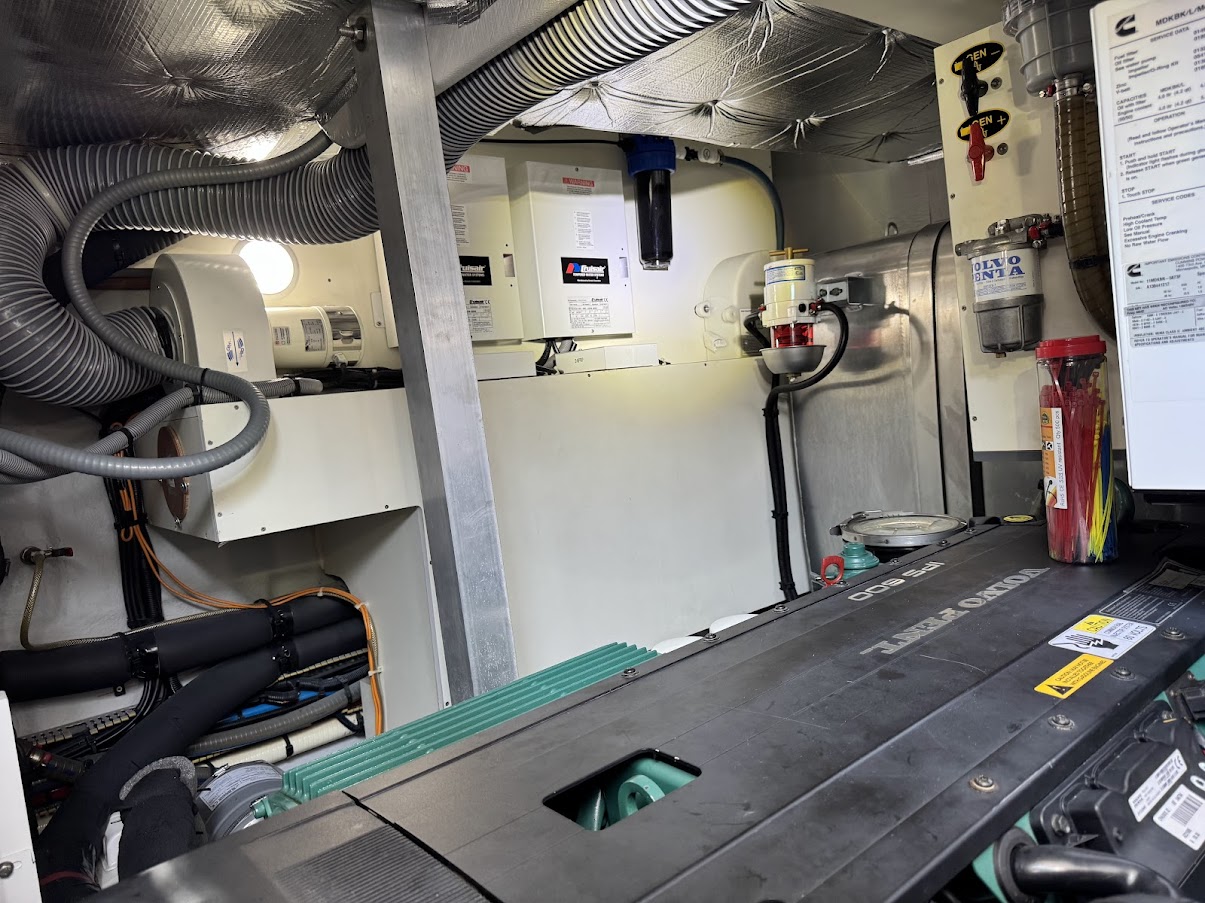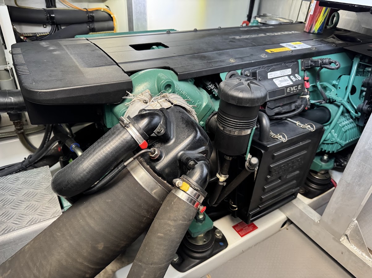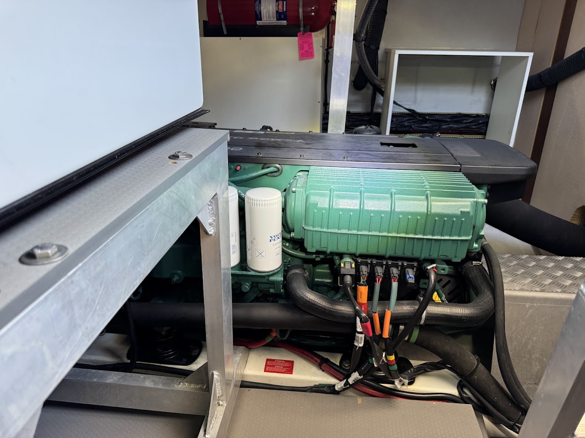 – Volvo recommended protocol full maintenance performed in March 2021 when engines had 958 hours – Nothing out of spec or concerning was found (air cooler, heat exchanger and oil coolers were inspected and cleaned, replaced eng coolant, replaced drive drain seals, removed each mixing elbow and inspected turbos, both spin freely and are unobstructed, cleaned/resealed/reinstalled shift solenoids, ,replaced all 8 seawater intake hose o’rings, etc.)