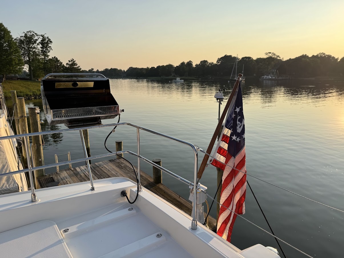 – Propane grill professionally mounted in the flybridge